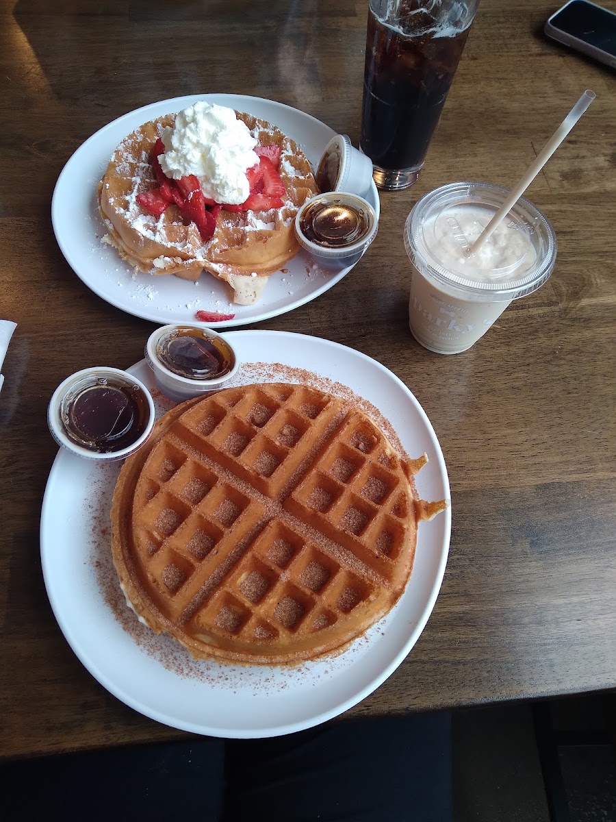 The menu is a delicious medley of offerings. Start your day with one of their *NEW* brunch items, like the hearty Steak and Eggs Burrito or the fresh Green Tomato BLT. Waffles take center stage here, with variations like Turtle Waffle and Strawberries and Cream Waffle, all priced affordably between $8.00 and $16.00.